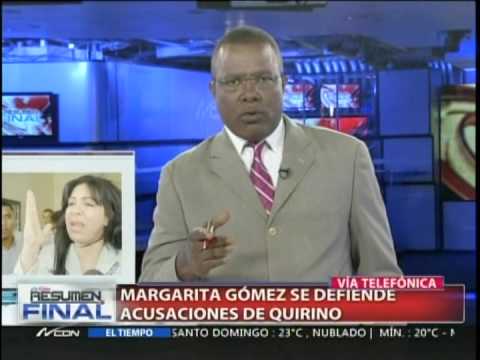 La señora Gomez al igual que el Abogado Carlos Barcacel salen a desmentir lo que dice el Sr. Quirino en sus declaraciones, este ultimo recibió una llama que fue grabada y retransmitida a los medios de comunicación y el mismo desde entonces no ha dado declaraciones al respecto, hará lo mismo Quirino con la Sra. Gomez o es Ella la que dice la verdad? esperamos que en los próximos días y con las investigaciones de lugar se llegue a aclarar esta tensa situación por el bien de nuestra República Dominicana y tranquilidad de los familiares de los involucrados en el susodicho caso.